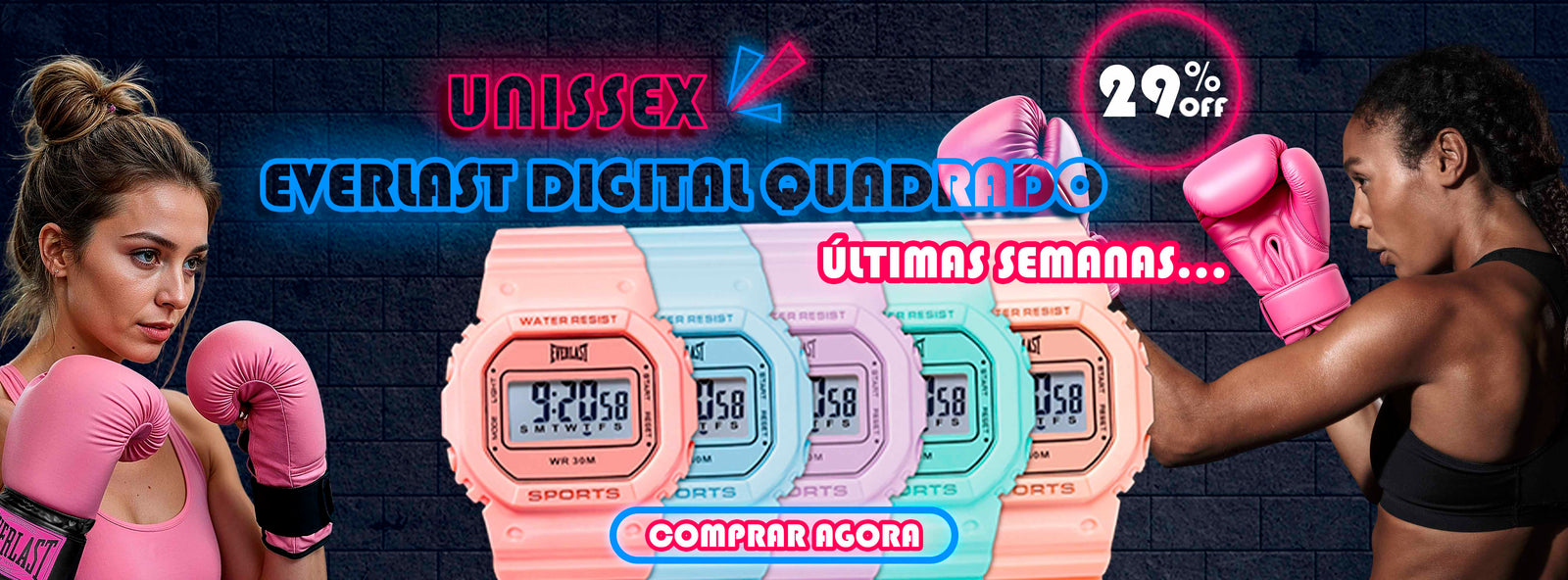 OFERTA IMBATÍVEL00 Dias00 Horas00 Min00 SegRelógio de Pulso Everlast Digital Quadrado Unissex Coral E759