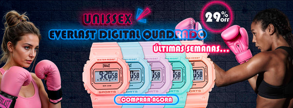 Somos a loja oficial da Everlast no Brasil, com exclusividade na comercialização dos relógios da marca, tanto para revendedores quanto para o público final.