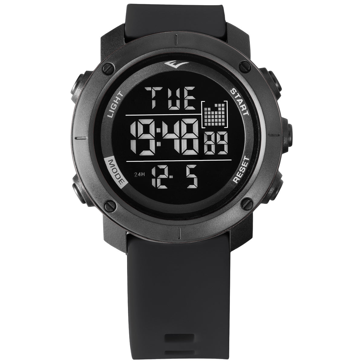 Hora, minuto, segundo, luz, calendário, alarme e cronômetro