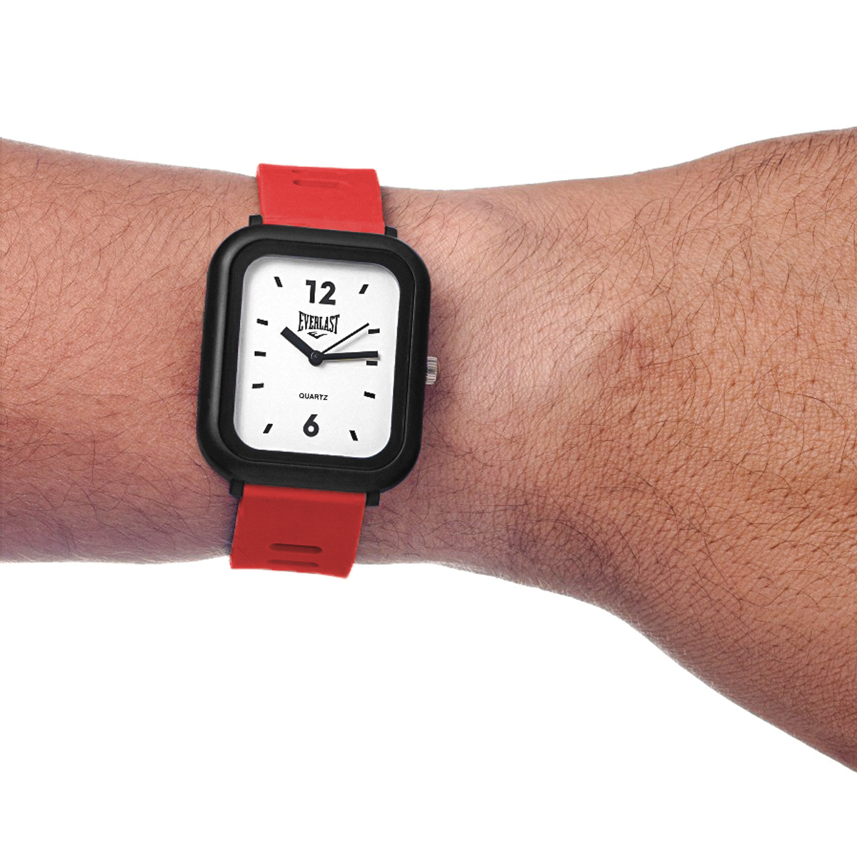 Os Atributos da Marca Mais importante do Mundo Fitness, Boxe e MMA estão presentes no relógio Everlast: Força, Resistência, Individualidade e Autenticidade. Relógio unissex analógico retangular com caixa de polímero 37x42mm de tamanho. Um relógio esportivo resistente à água até 30m 3 ATM. Com 2 anos de garantia.